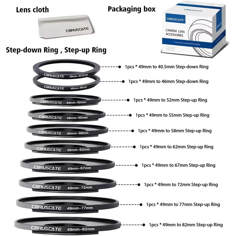 Forge Kit is the complete adapter ring set designed to provide maximum versatility for your 49mm lens. The kit covers a wide range of accessory diameters, allowing you to use various filters and attachments with confidence. Precision-machined threads ensure stable and secure installation without play. The matte interior finish helps minimize unwanted light reflections. Its robust construction maintains structural integrity even with frequent use. A comprehensive solution for photographers working across multiple filter standards.